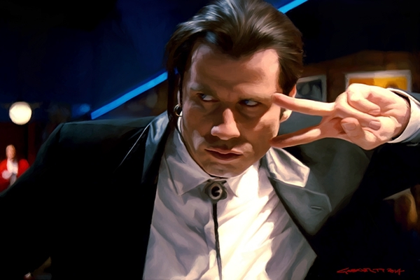 So what about Mia? We know that she is Marsellus's wife, and we also know that she also, in a sense, dies and comes back to life. Mia is the sacrificial lamb, and in some ways also represents Jesus. When Vincent comes to pick her up, she says in the microphone upstairs "I'll be down in two shakes of a lamb's tail." She directs him to make a drink at the bar, which is by the fireplace- more altar imagery. At the diner, they dance ceremoniously, with no shoes on. When they get home, vincent questions himself in the bathroom. Has Marsellus trusted him with his wife to test his loyalty? As we know, he resolves to take the high road and leave, when he comes and finds her on the floor in shock. He takes her to be revived, and has to stab her with the needle. This is in reference to the story of Abraham and Isaac, with Mia being the sacrifice that is given back. However, it also is representative of Jesus's death and resurrection. Can she and Vincent represent the same thing? I think they do, because during the date, they are dressed notably alike. after Mia is revived, she changes into a black shirt.